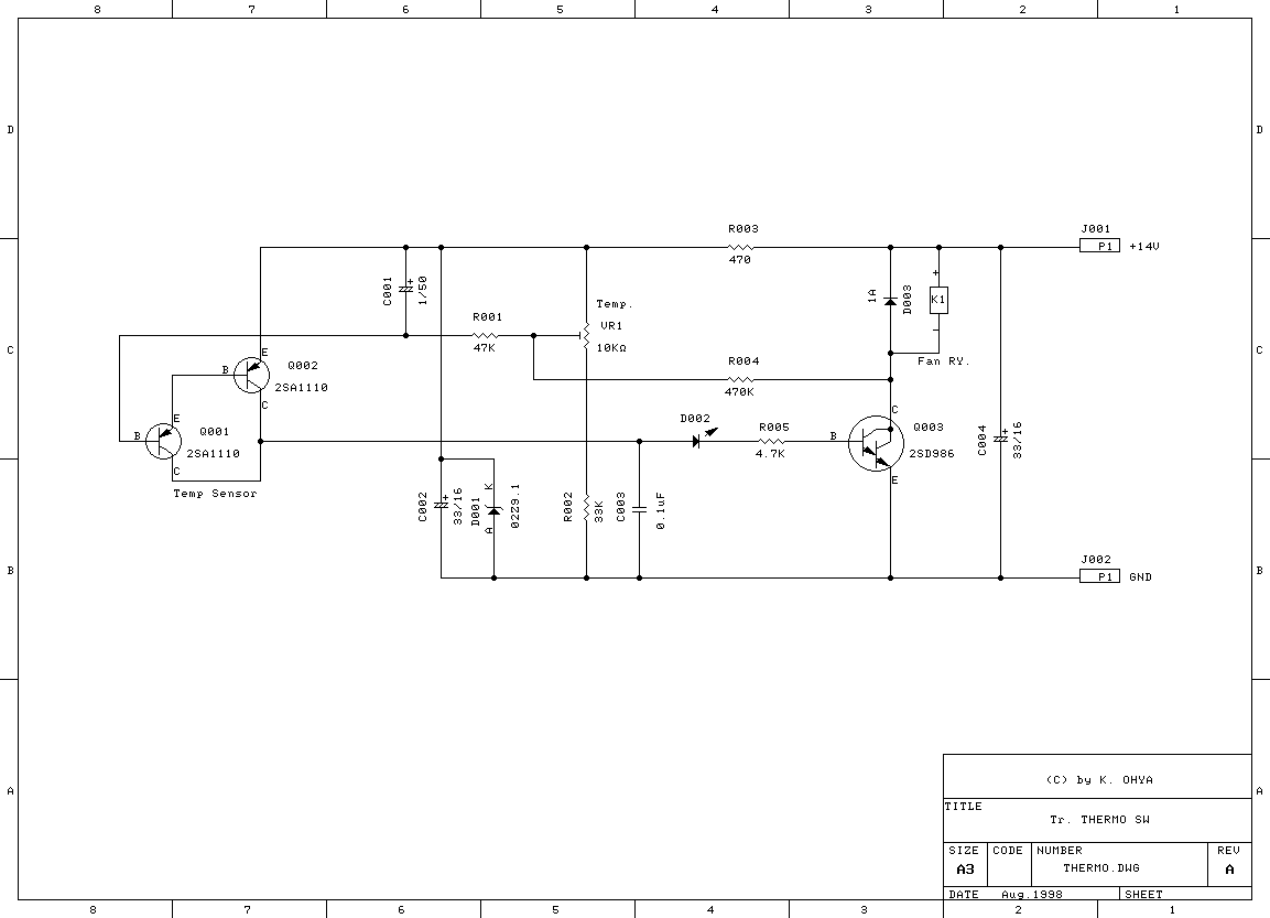 自動車用のリレーや小型のブロア等を動かせる様に考えてありますが、 小型のリレーだけならリレードライブTrを温度センサにもできますね。